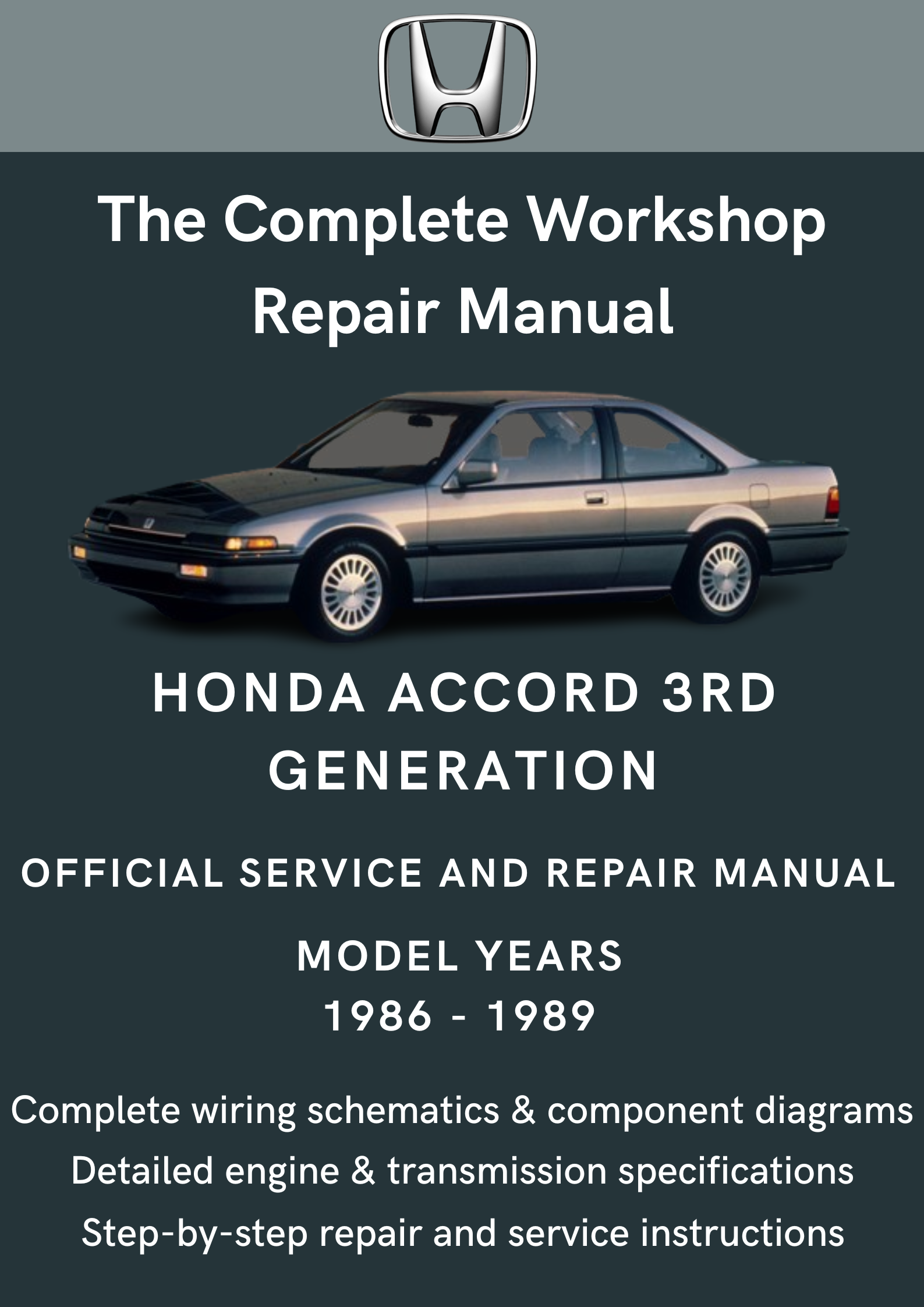 Service your dependable family sedan with our comprehensive 3rd generation Accord manual. This detailed guide covers the robust A-series engines, smooth automatic transmissions, and quality engineering that established Honda's reputation for reliability. Whether you're maintaining a daily commuter or restoring a clean example, our manual provides complete procedures for engine service, transmission maintenance, electrical diagnostics, and suspension repairs. Perfect for owners who value Honda's legendary dependability, with clear instructions for keeping these well-built sedans running smoothly for hundreds of thousands of miles.