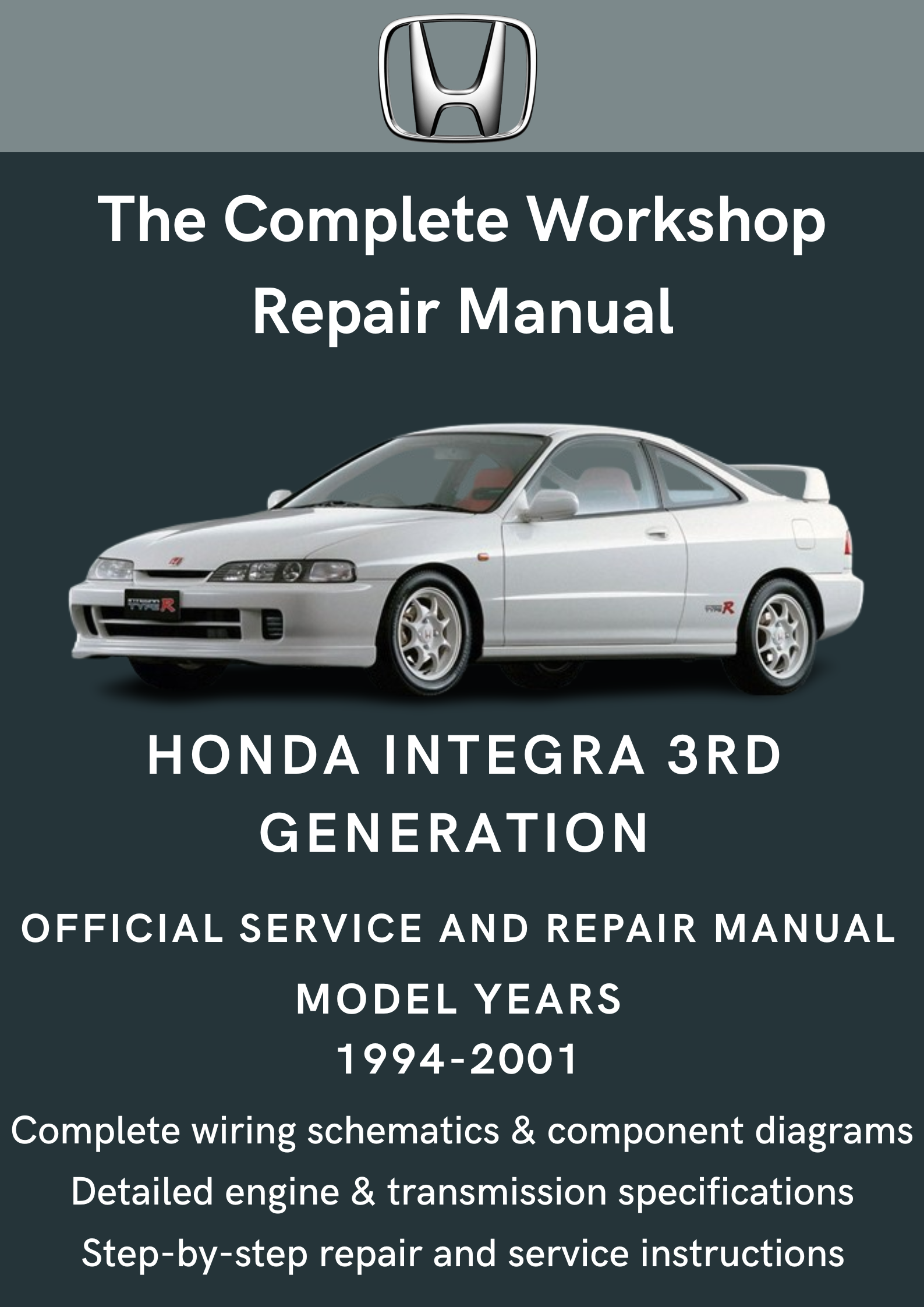 Perfect your sport compact legend with our complete 3rd generation Integra manual. This comprehensive guide covers the potent B-series VTEC engines, close-ratio transmissions, and razor-sharp handling that made the Integra a tuner favorite. Whether you're building a Type R track weapon or maintaining an RS daily driver, our manual provides thorough procedures for VTEC engine rebuilds, transmission service, suspension upgrades, and performance modifications. Essential for enthusiasts passionate about these driver-focused machines, with detailed instructions for keeping these timeless sport compacts at their absolute best.