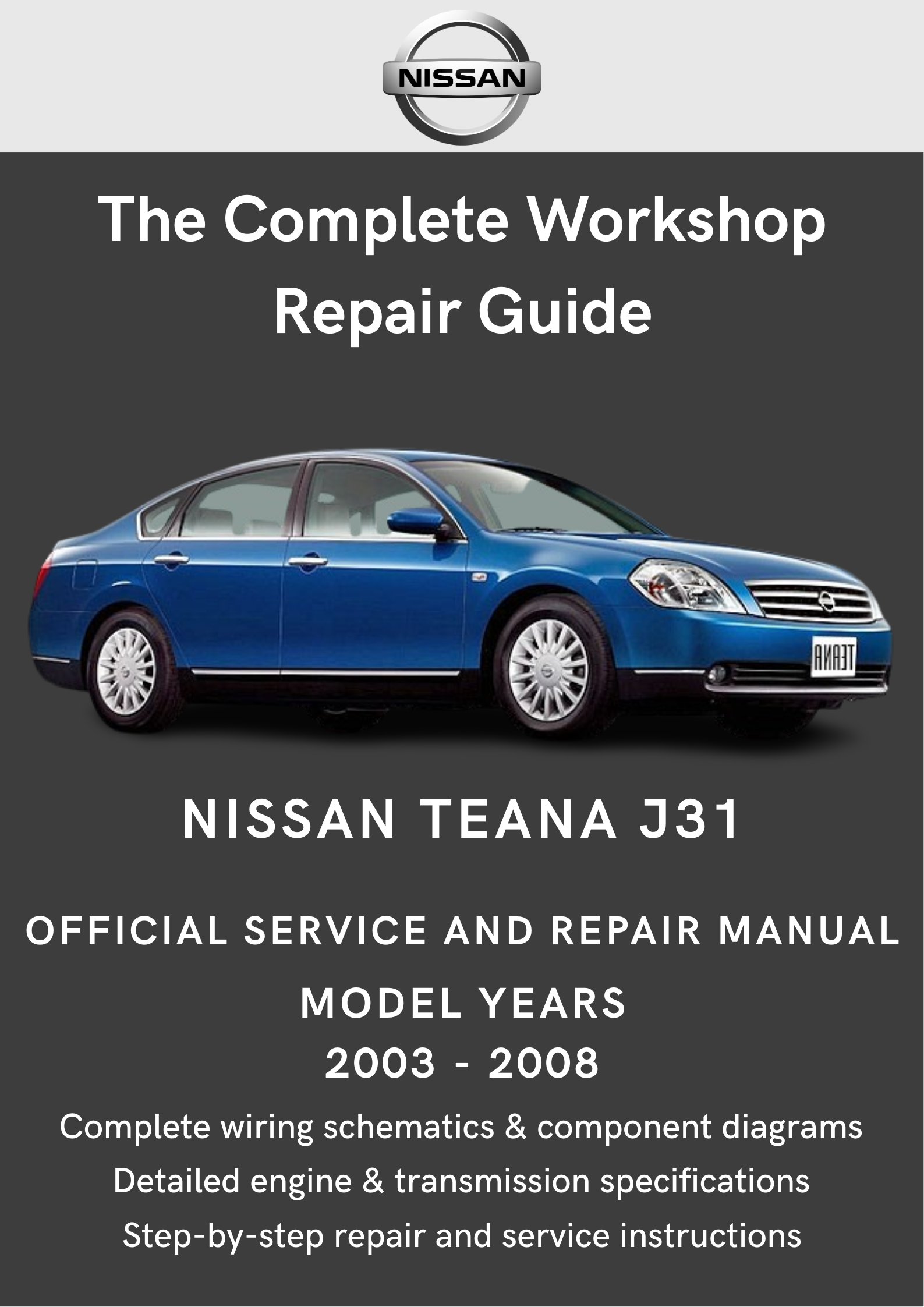Service your sophisticated executive sedan with our comprehensive J31 workshop manual. This detailed guide covers the refined V6 engines, smooth CVT transmissions, and advanced comfort features that made the Teana such an impressive luxury car for its class. Our manual includes detailed procedures for engine maintenance, transmission service, and all the electronic systems that provide the comfort and refinement Teana owners expect. Perfect for maintaining these well-appointed sedans that offer excellent ride quality, spacious interiors, and reliable performance for both business and family use.